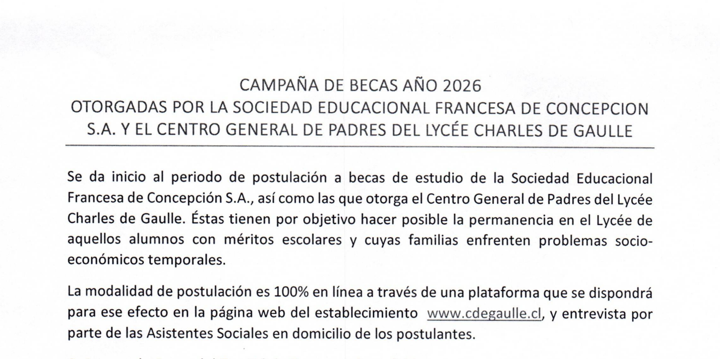 Otorgadas por la Sociedad Educacional Francesa de Concepción. Estimadas familias, Les informamos que se ha[…]